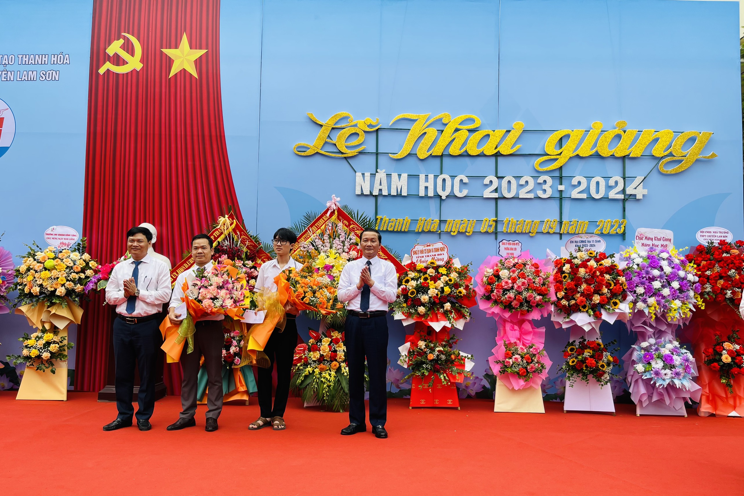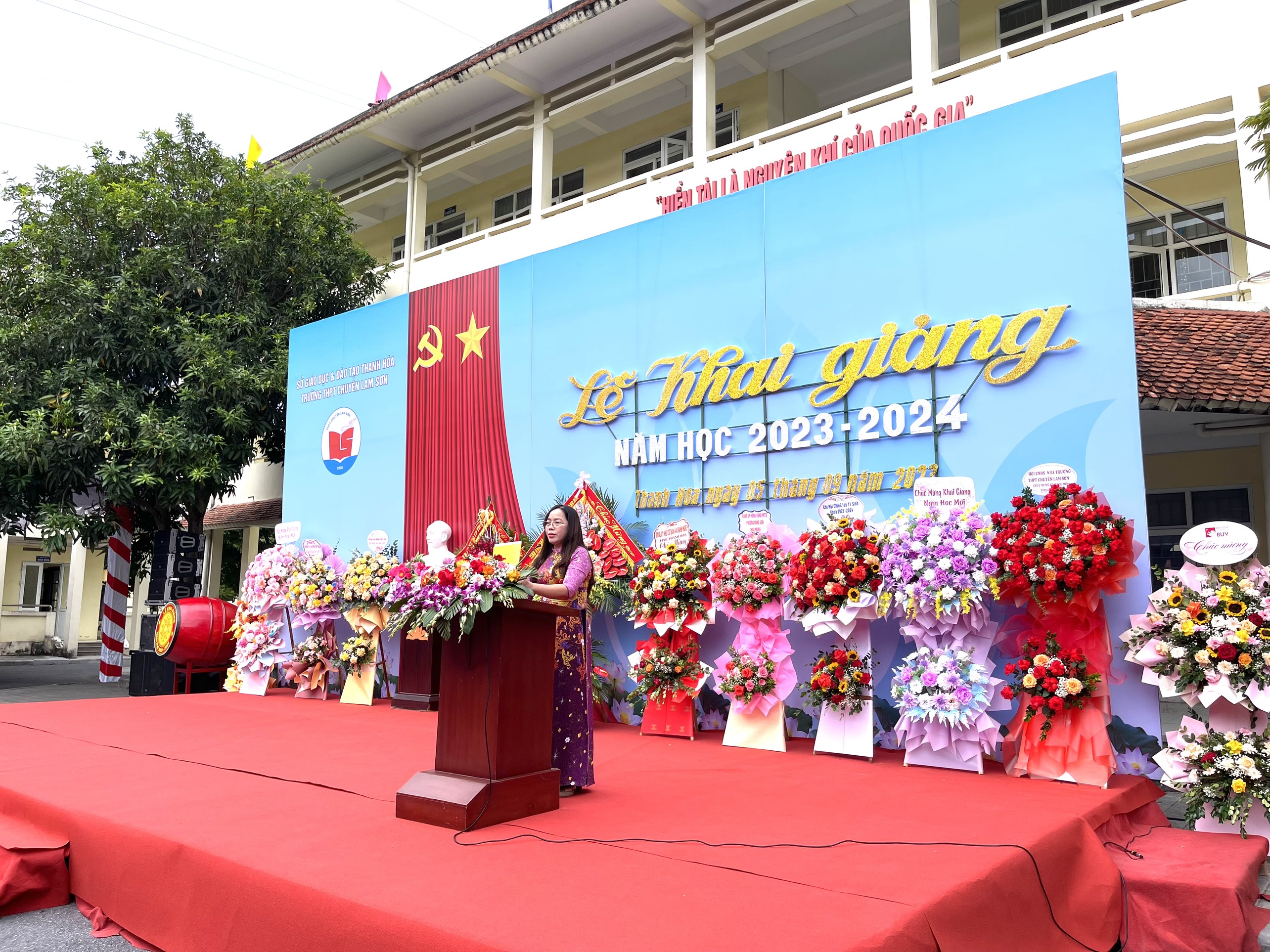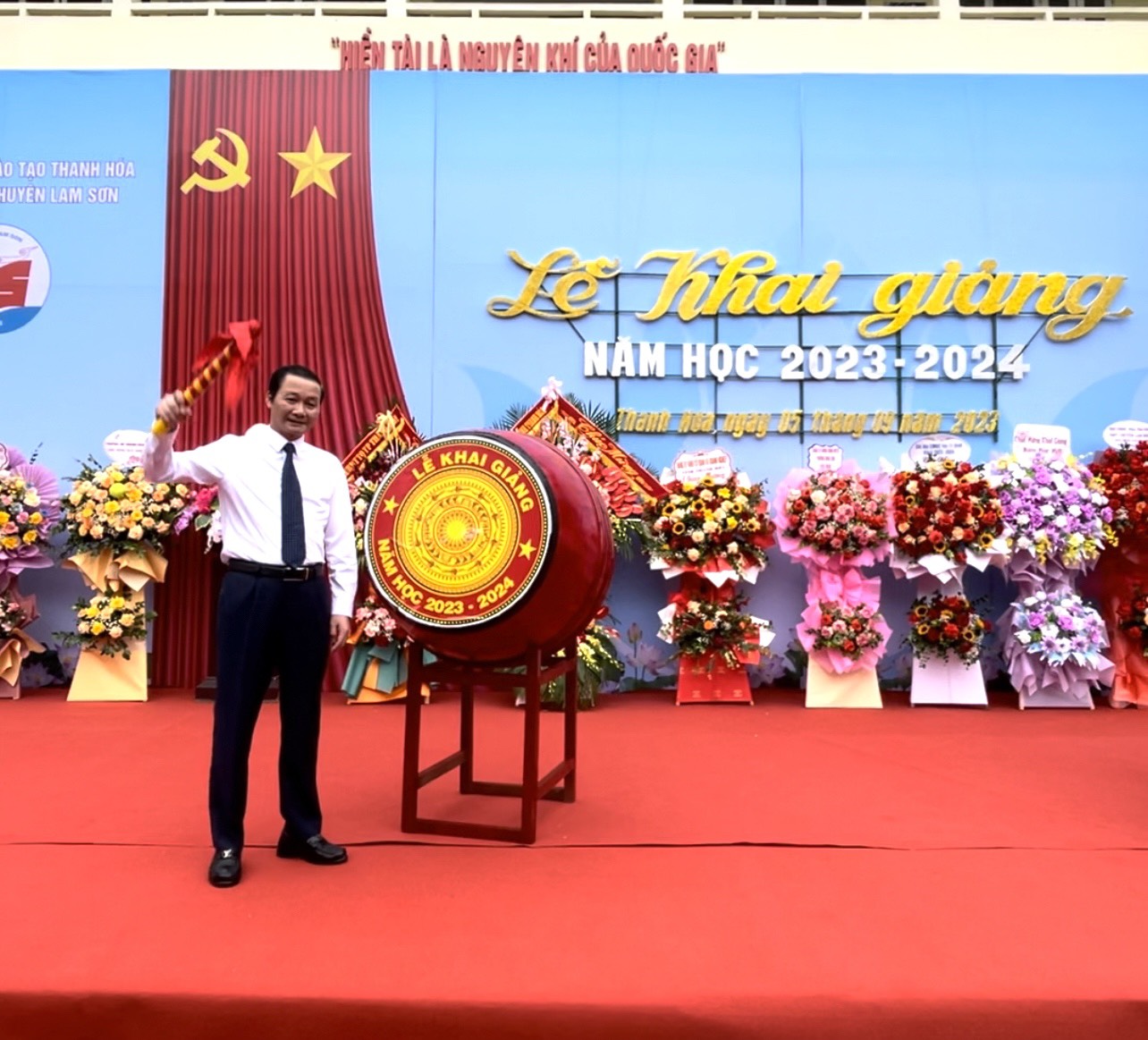 Đồng chí Đỗ Minh Tuấn – Phó Bí thư Tỉnh uỷ, Chủ tịch UBND tỉnh đã đánh hồi trống khai trường, chính thức thầy và trò trường Lam Sơn bắt đầu một năm học mới với nhiều thử thách và vinh quang phía trước.
