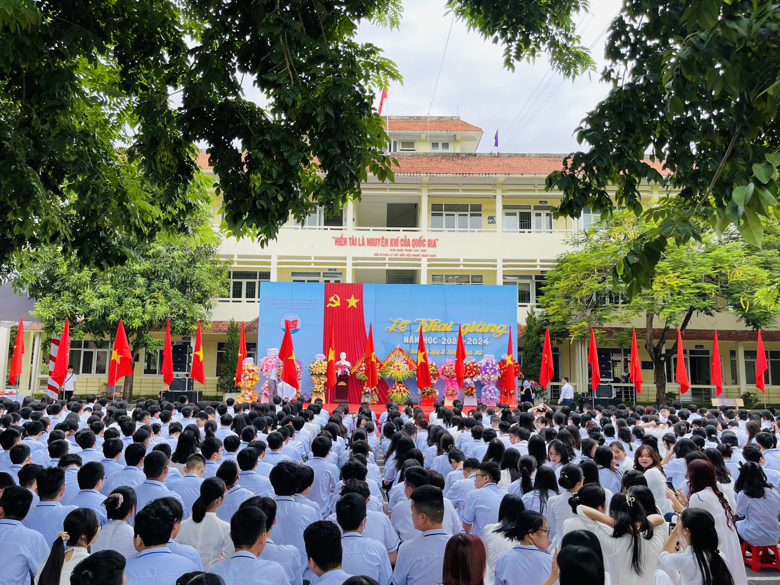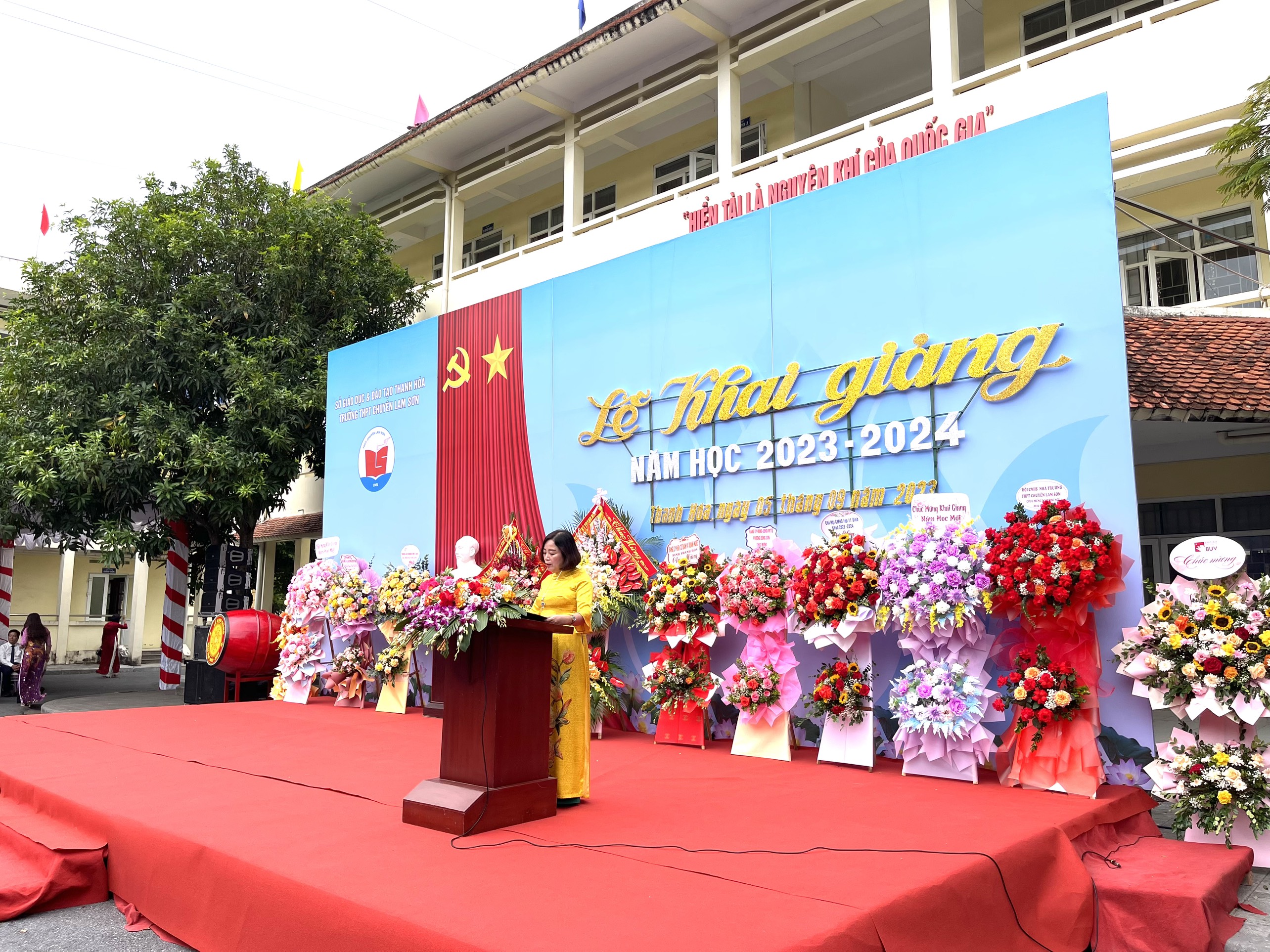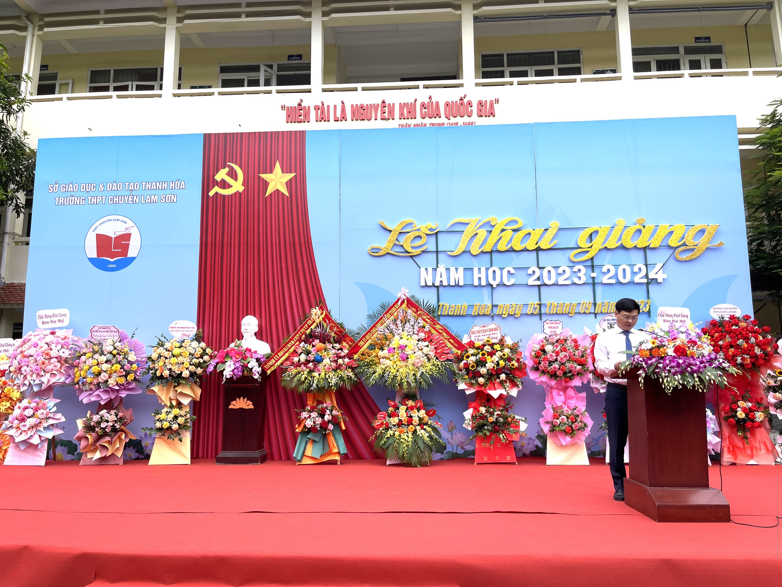 Đồng chí Đỗ Minh Tuấn – Phó Bí thư Tỉnh uỷ, Chủ tịch UBND tỉnh đã đánh hồi trống khai trường, chính thức thầy và trò trường Lam Sơn bắt đầu một năm học mới với nhiều thử thách và vinh quang phía trước.