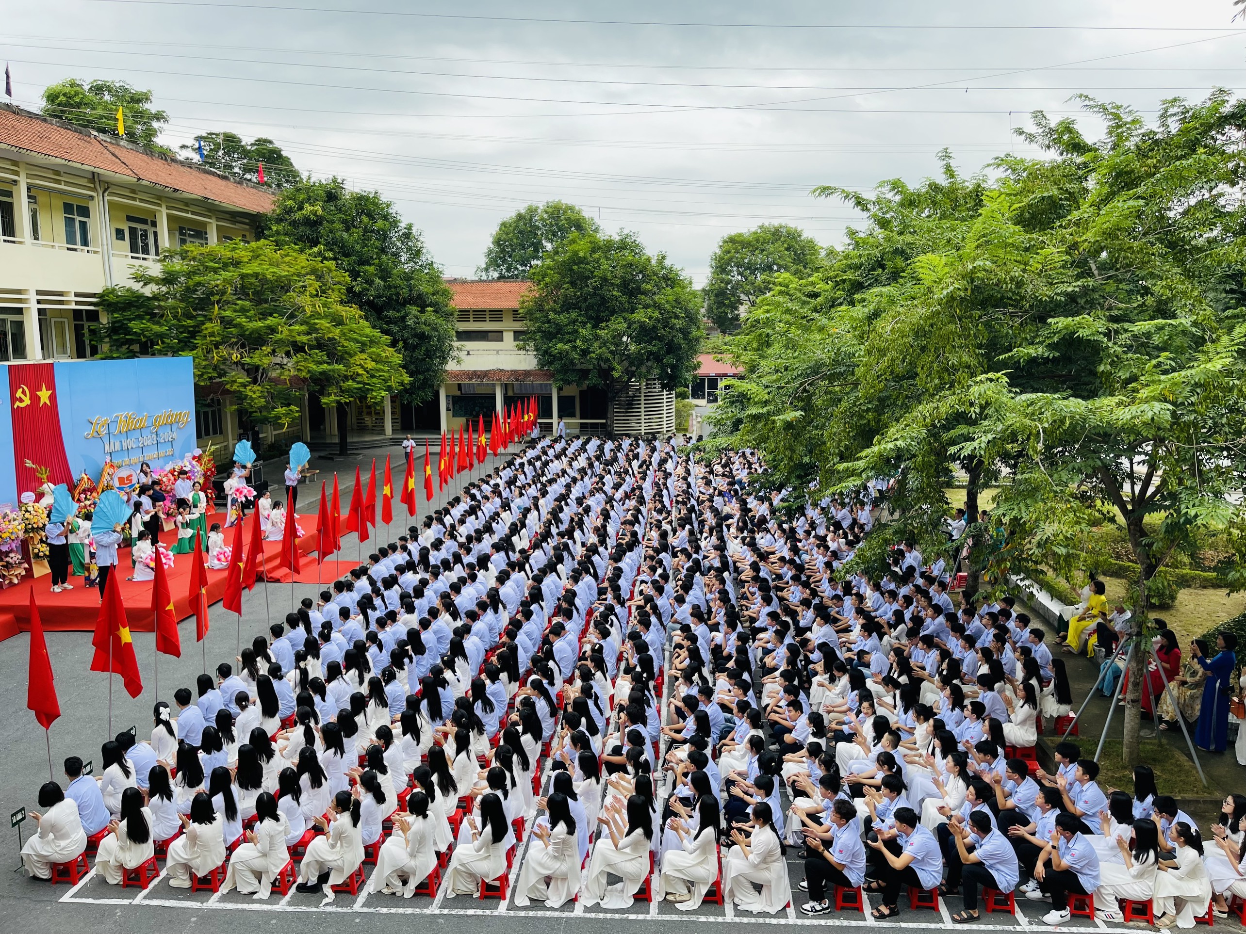 Lễ khai giảng kết thúc với việc công bố quyết định khen thưởng và tổ chức trao thưởng cho thầy giáo Nguyễn Hoàng Hà và em Lê Viết Hoàng Anh đã xuất sắc đạt Huy chương Bạc Olimpic Vật lý quốc tế tại Nhật Bản tháng 7 năm 2023. Thành tích của thầy và trò em Hoàng Anh sẽ là động lực phấn đấu cho tất cả các thầy cô và học sinh vươn lên đạt những thành tích xuất sắc trong năm học mới.